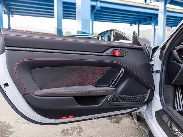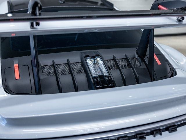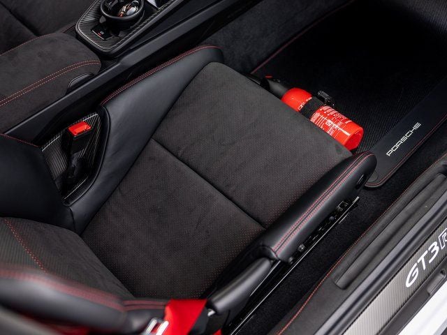The cabin continues its motorsport intent with Guards Red seat belts, central tachometer, Chrono stopwatch dial, Extended Race-Tex Package, and numerous bespoke detailing elements that reflect the car’s precision-focused build.